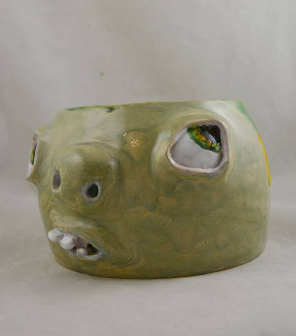 Bowl for troll-shaped yarn (3 holes), in the teeth there is a hole for dragging the yarn and in the nostrils (2 holes).